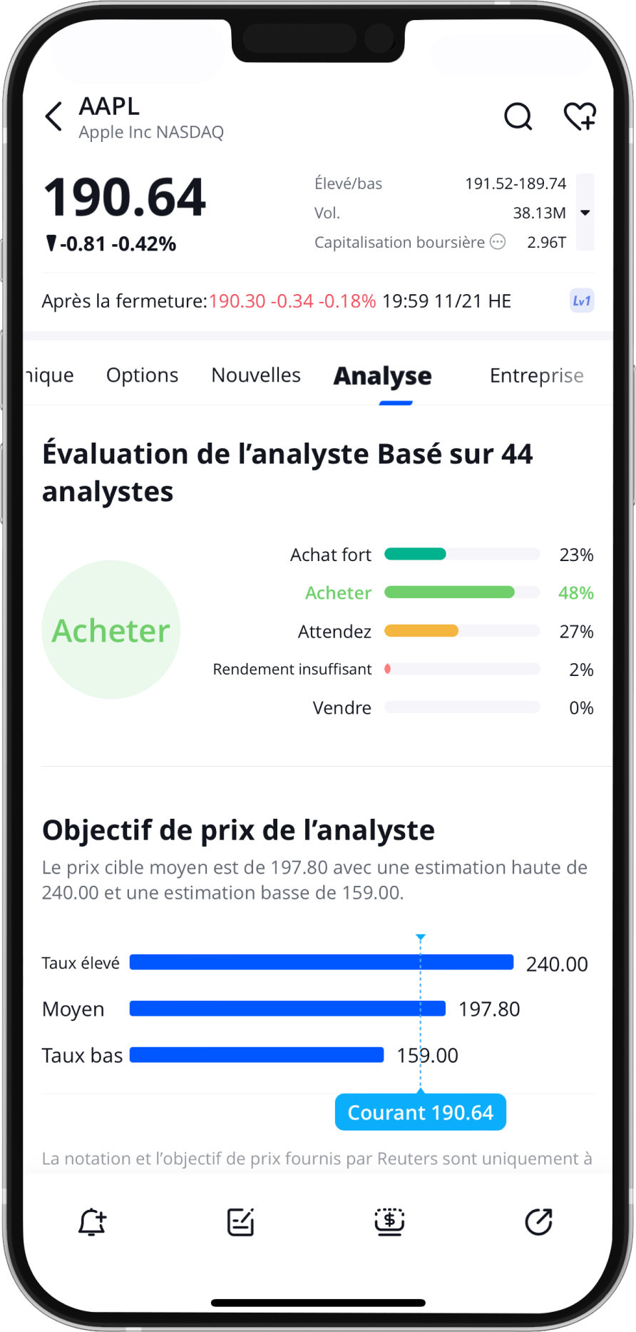 Vérifiez ce que les analystes disent d’un titre et s’ils sont d’accord avec vous.