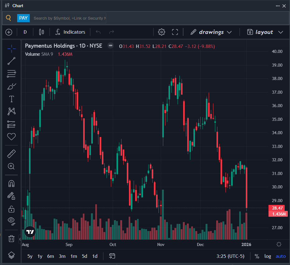 • Action du cours PAY : Les actions de Paymentus ont chuté de 9,9 % pour clôturer à 28,47$ vendredi.
