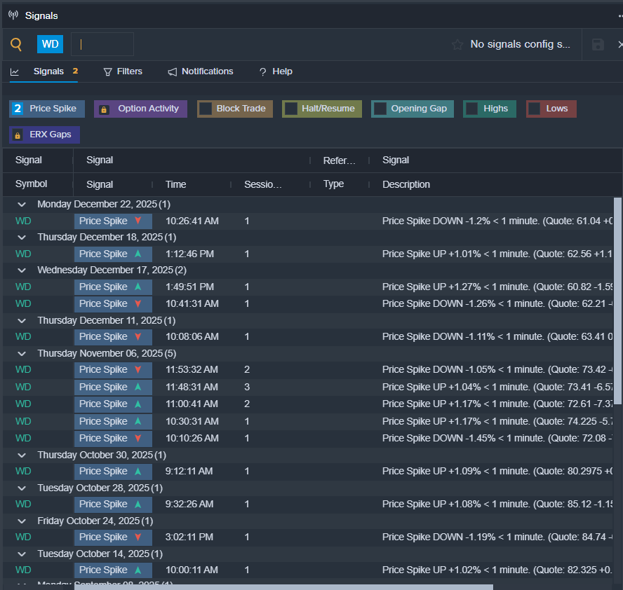 • La fonction de signaux de Benzinga Pro est informée d'une éventuelle cassure des actions WD.