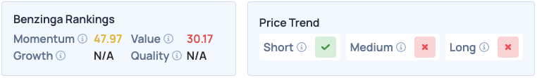 Malgré la récente hausse de ses scores, Sezzle continue de se classer mal dans le classement des actions Edge de Benzinga en termes de momentum et de valeur, mais affiche une tendance de cours favorable à court terme. Cliquez ici pour voir comment l'entreprise se compare à Klarna et Affirm.