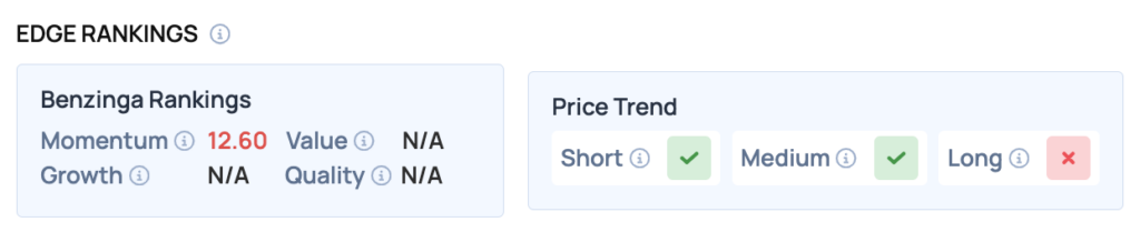 Benzinga Edge Rankings: Reflecting this news, the stock’s Benzinga Edge rankings show a Momentum score of 12.60 and a positive short and medium-term price trend.