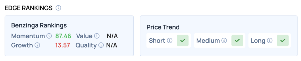 Benzinga Edge Rankings: According to Benzinga Edge stock rankings, the stock boasts a strong Momentum score of 87.46.