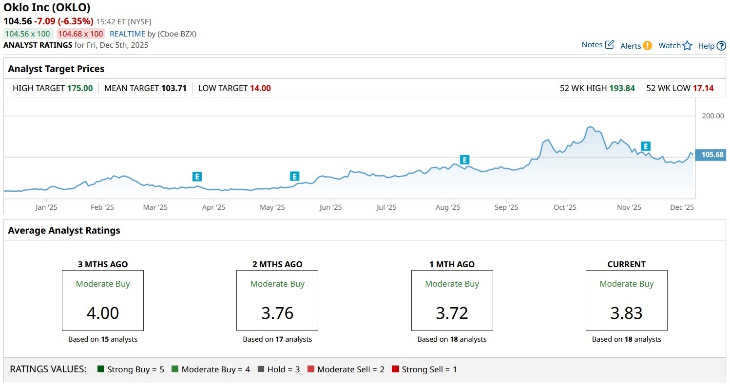 Wall Street analysts seem to agree that much of the upside is already priced into OKLO shares at current levels.