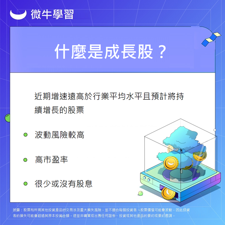 - 波動風險較高。無法保證增長率會否繼續攀升。如果公司的增長速度不如預期,即使盈利穩定,其股價也會下跌。此外,成長型股票更容易受到負面消息的影響。當負面消息出現時,股價通常會大幅下跌。